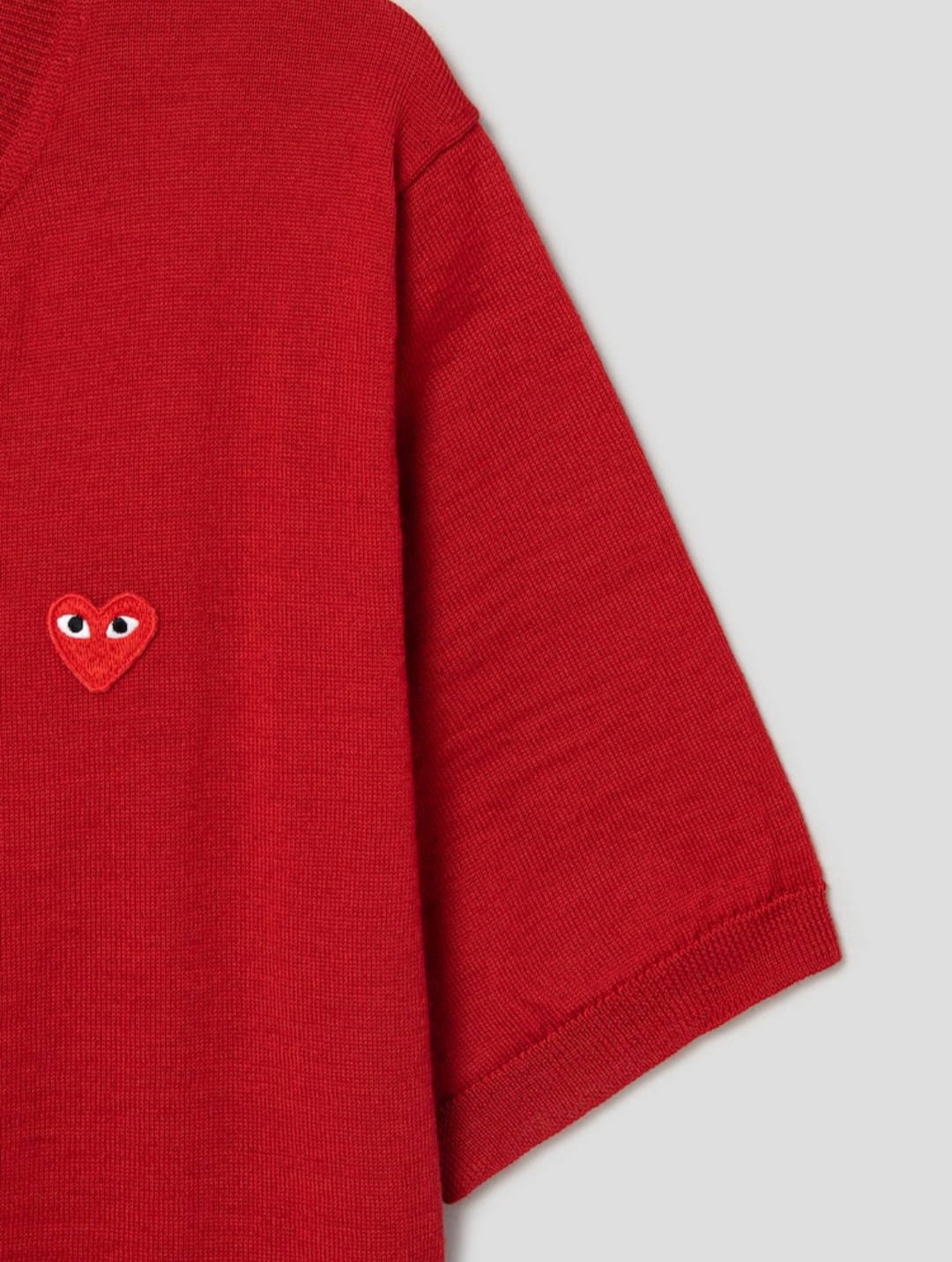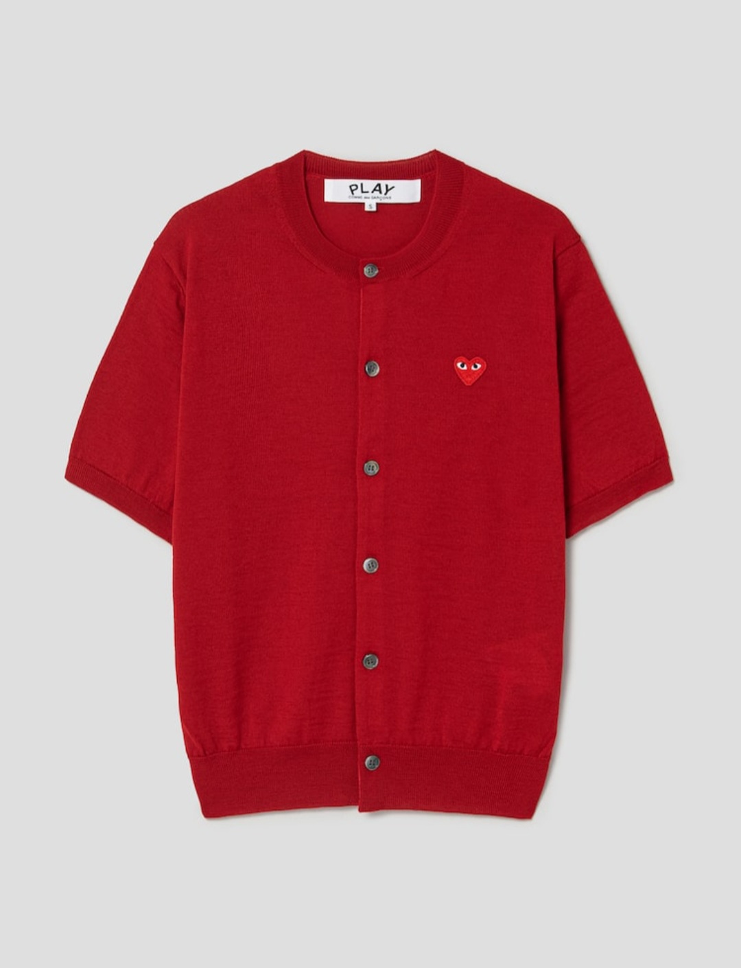 레드 하트 와펜 숏 슬리브 가디건 - Red